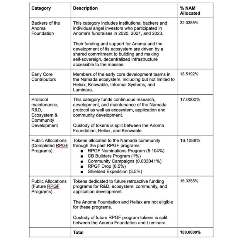 Anoma 基金会提出的 Namada 初始分配方案概述