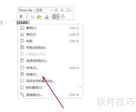 - 打开RTF文档,选中文字后右键选择段落进行设置。