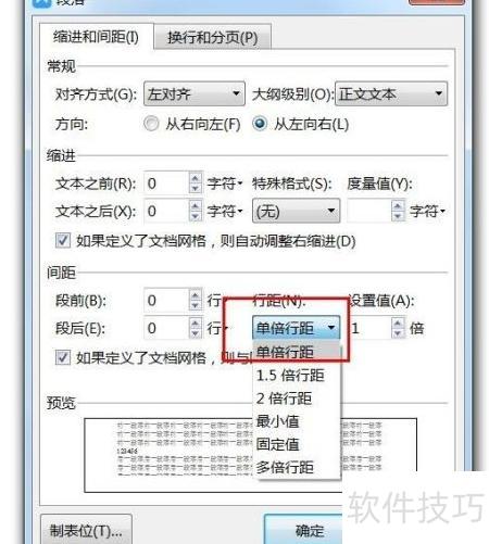 - 在右侧找到与选项,从下拉列表中选取所需的行间距。