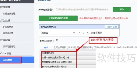 - 在FineBI服务列表中选择立方体更新功能进行点击操作。