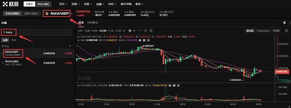5.在左侧点击RACA/USDT交易对,即可看到RACA实时行情