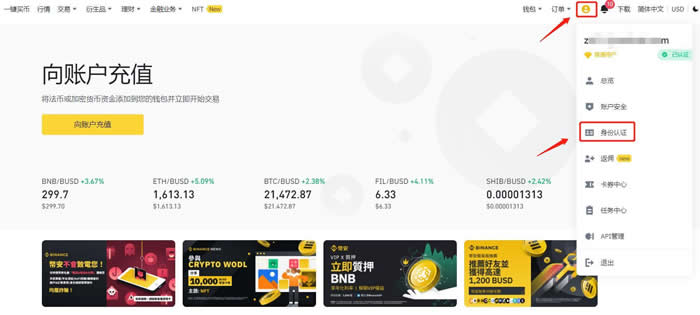 3、注册完成后,点击右上角的【用户中心】进入【身份认证页面】根据提示进行身份验证
