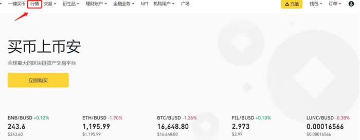 一、登陆币安官网,进入行情页面(注意:国内用户目前仅支持邮箱注册!)