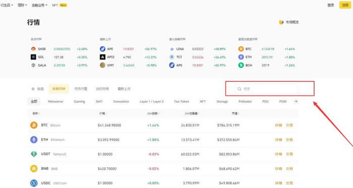 二、搜索我们要购买的币种