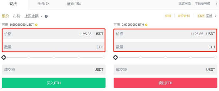 三、点击ETH/USDT交易对后,即可进入购买页面