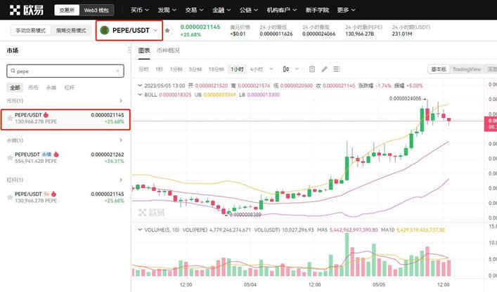目前PEPE币已经上架了18家数字货币交易所,下面以欧易OKX交易所为例,为大家详细介绍PEPE币买入教程: