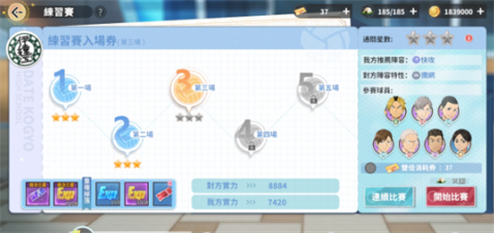 2、比赛实训:此模式集合了众多竞技赛事,供玩家逐一挑战,不仅能够测试阵容实力,还能在获得三星评价时收获球员经验与高级招募券作为奖赏。