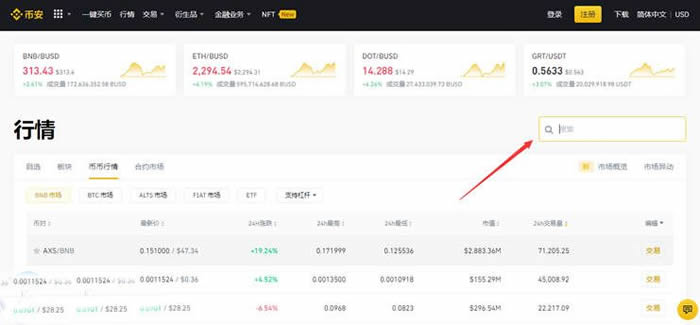 第一步:登录币安官网注册(),进入报价页面