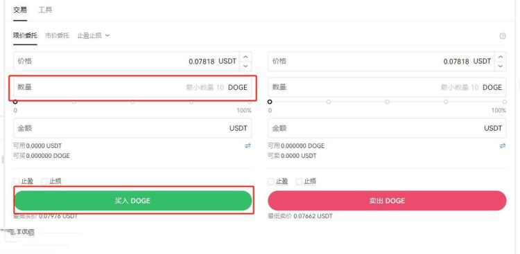 12、输入买入DOGE数量,点击买入DOGE就完成狗狗币购买