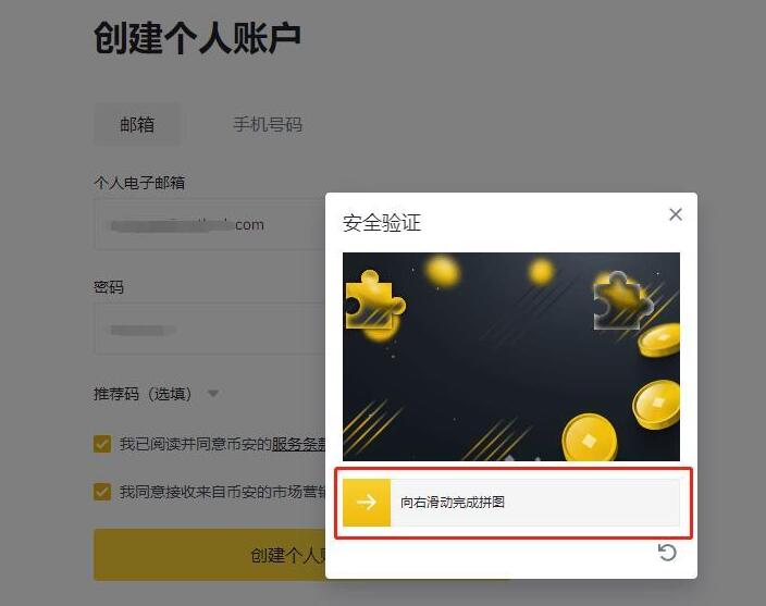 2、选择【邮箱】,输入您的个人电子邮箱,然后为您的账户创建一个安全密码,记得勾选“服务条款和隐私法规”。