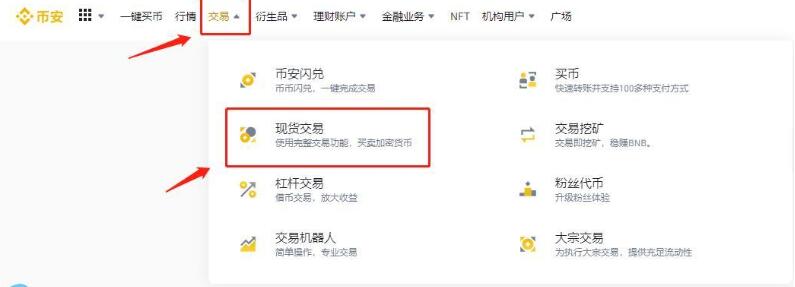 5、注册完成后就可以登录账号,在首页选择交易-现货交易。