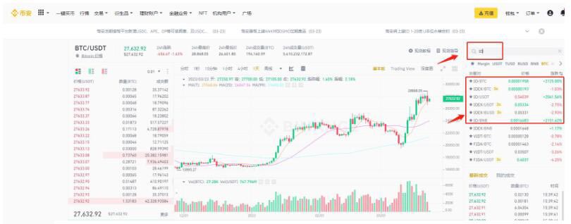 6、在右侧搜索栏中输入ID,就会出现相关的交易对。