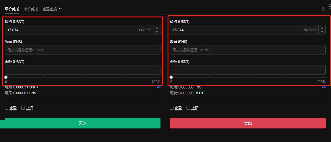 6.填写ENS购买数量,点击买入,若是卖出,填写ENS卖出量,点击卖出即可。注意:ENS最小交易数量是0.1ENS