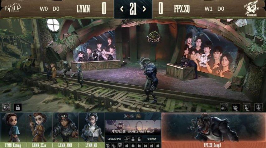 LYMN的求生者选择了教授、园丁、守墓人、木偶师;FPX.ZQ的监管者DongX选择了时空之影。(BAN先知、机械师、大副、“心理学家”)