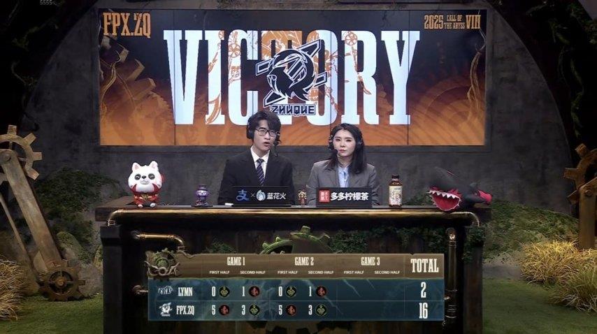 最终,FPX.ZQ以2胜0平0负(16:2)的比分击败LYMN,获得本场比赛的胜利。