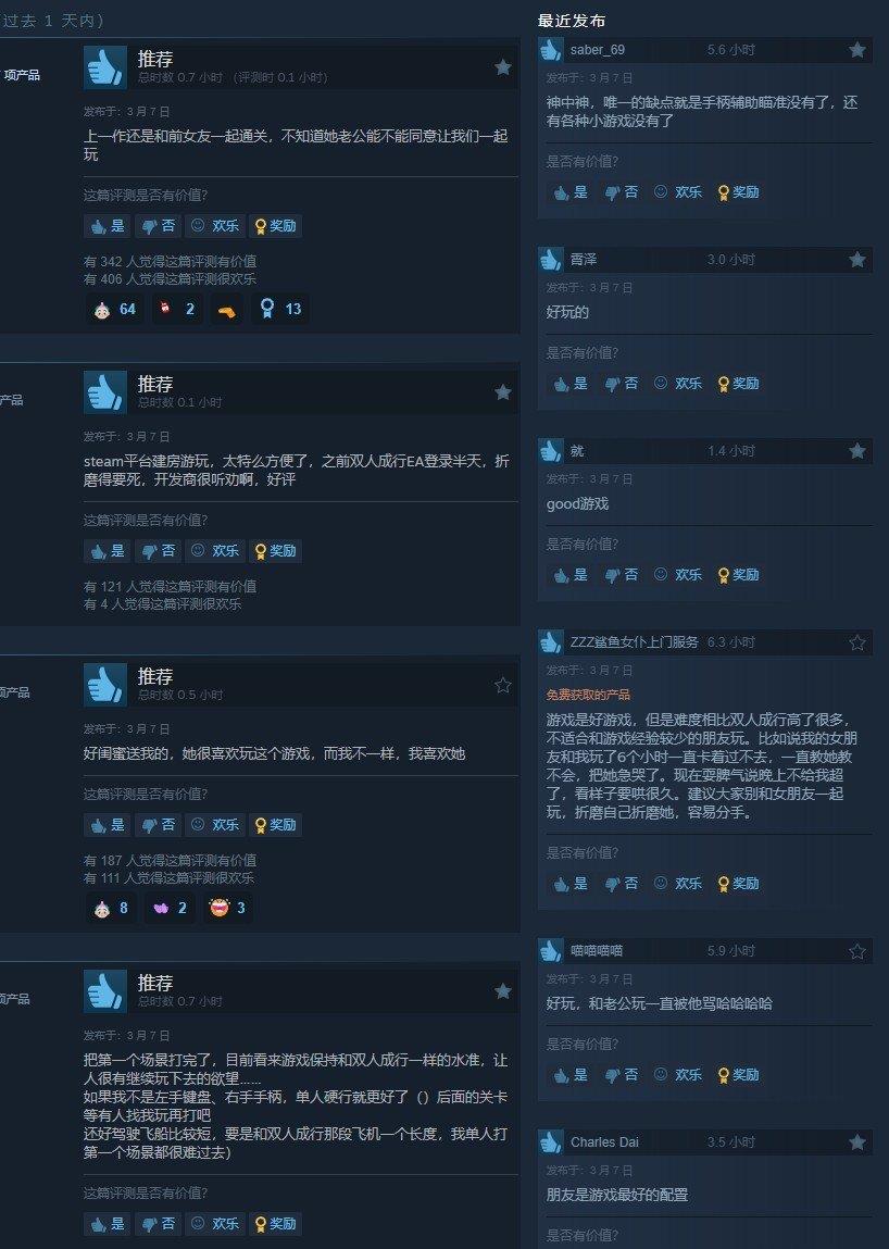 《双人成行》开发商新作《双影奇境》现已正式解锁发售,Steam国区198元,支持简体中文和中文配音。该作首发立刻获得玩家“好评如潮”评价。目前Steam上共有567篇评价,好评率高达96%。