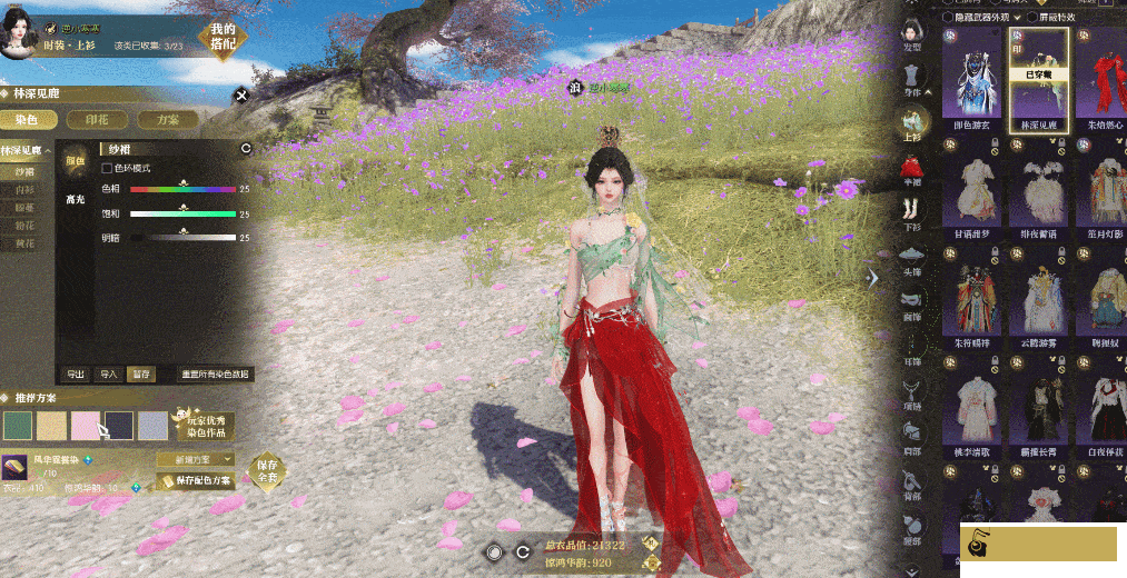 5.本周更新后,时装上衫、半裙、下衫等部位将支持染色/裁剪/印花方案的暂存功能。同门在自由搭配时装时,可实时预览整体效果,并支持一键结算所有方案。