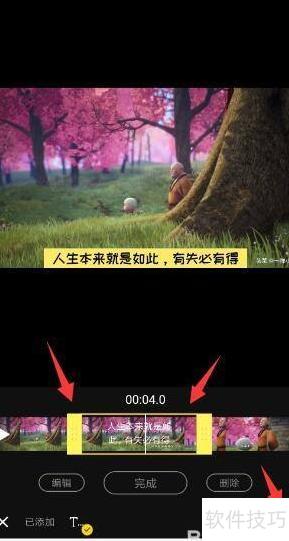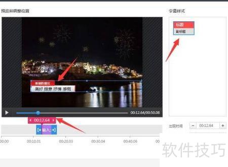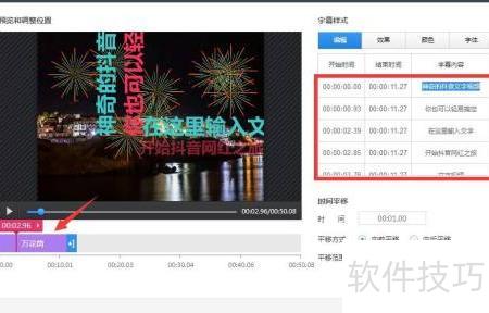转至字幕选项菜单,接着调整字幕的位置与展现时长;接下来,在字幕清单内针对每一句分别设置展示时间和文字内容,以此完成字幕的精细管理。
