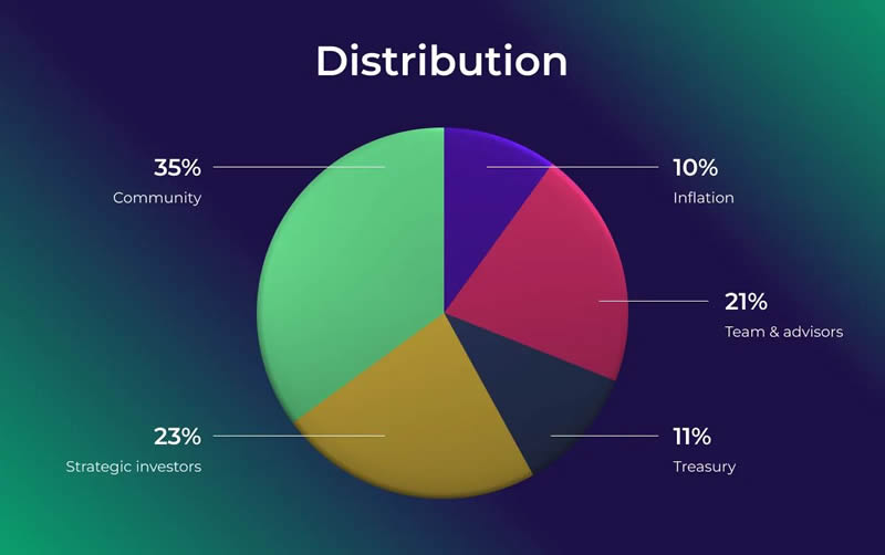 社区:35%(包括早期社区奖励、公开销售、拨款、漏洞赏金和审计奖励)