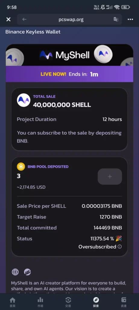 币安Alpha 空投常以IDO (TGE)的形式发放,获得资格的用户可以用$BNB 参与新项目的打新活动,下列笔者以第一期$SHELL 做图文示范该如何参与币安钱袋IDO。