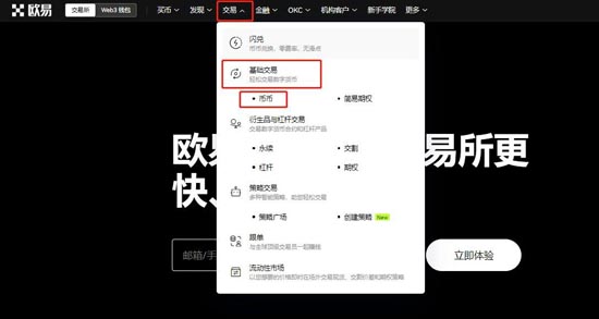 4、登陆完回到首页,点击交易-基础交易-币币,进入交易页面。