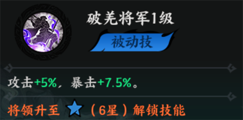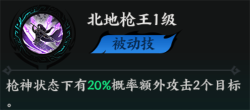 普攻输出武将。释放怒气技改变自身的普攻形态,射程提高的同时伤害亦跟着增长。觉醒技搭配枪神状态有概率额外攻击2个目标,清怪效率小幅提升。