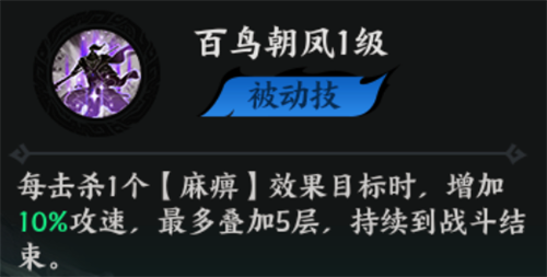 普攻武将的输出效率要看攻速。而张绣想要获取攻速增益,则需击杀处于麻痹状态下的武将。每击杀1个增加10%的攻速,是非常典型的滚雪球武将。
