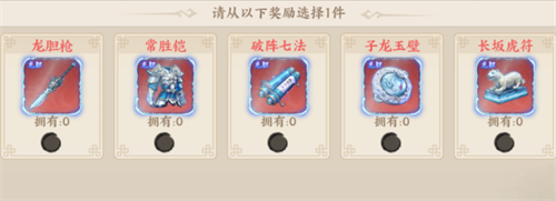 橙色宝物选武力群雄套,连环弓、碧血佩、三略、琉璃灯、骑营将令。