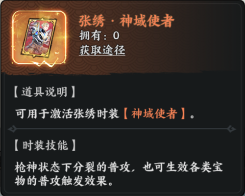 激活皮肤后,分裂的普攻也能触发各种宝物的普攻触发效果!这既提高了宝物的利用率,也再次增强了张绣的输出能力,有需要的主公不要错过!