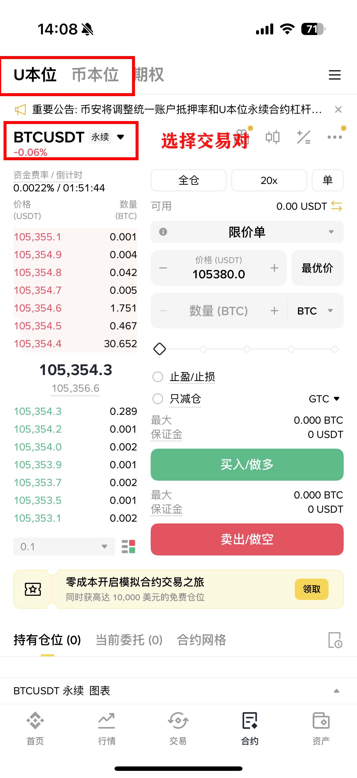 币安合约开单步骤