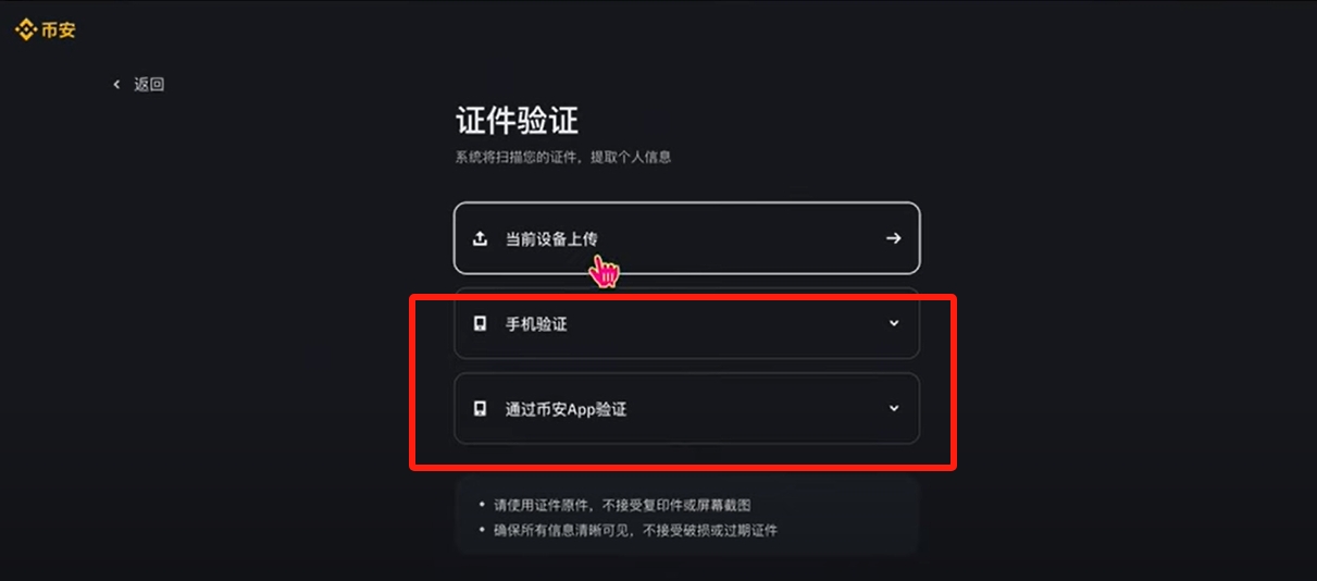 你可以通过当前设备去上传身份件的正反面照片。