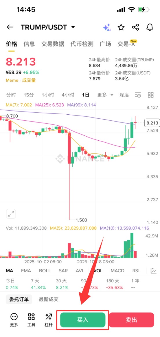 下面以币安为例,为大家演示TRUMP币购买步骤教程。