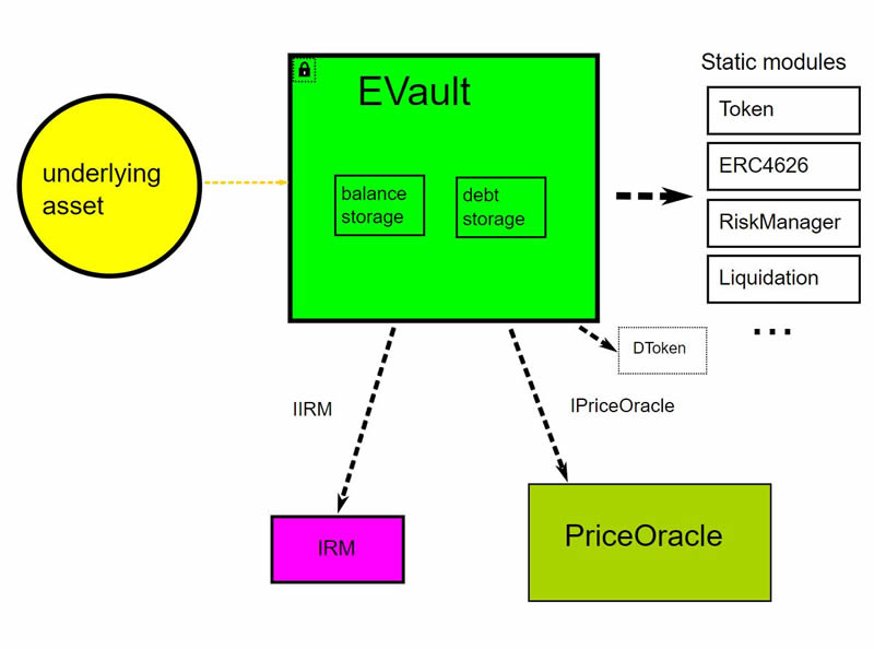 Euler保险库套件(EVK)构成了Euler v2模块化架构的基础,为贷方和交易者提供了顶级的使用体验。它解决了多样化的风险/回报机会、新的抵押品选择、降低借款成本以及先进的风险管理工具等需求。EVK是一个为创建和管理符合ERC-4626标准的信用保险库而定制的工具包,这些信用保险库是具有借款功能的被动借款池。与通过主动投资产生收益的典型ERC-4626保险库不同,信用保险库通过借款人支付的利息来赚取收益。这种模块化的方法允许单一资产借款,这一点与通常要求多种资产的其他DeFi借款协议不同。单一资产功能使用户能更好地控制和定制他们的借款策略。