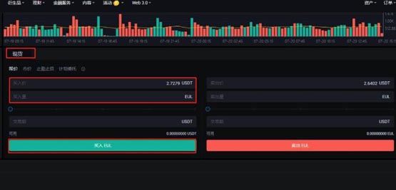 8.选择【现货】,输入买入数量,点击【买入EUL】,即可完成购买。