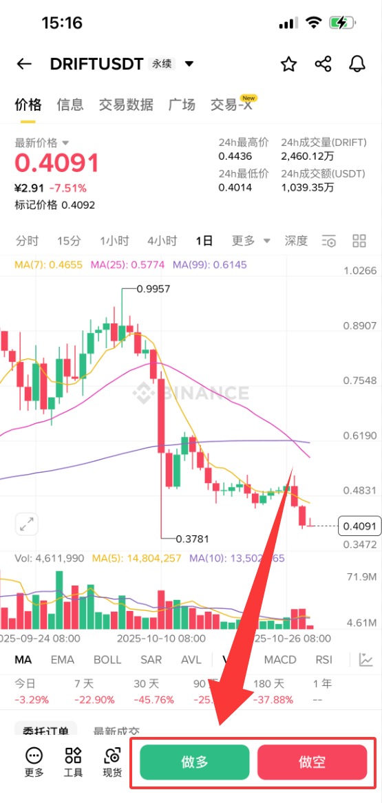 相比于现货,交易者在合约平台上交易DRIFT 能获得更多收益。因为您只需要推测$DRIFT 的涨跌,便可利用杠杆以更低的成本获得更高的收益。