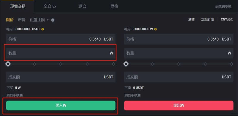 9、填写买入数量,点击【买入W】即可完成W币交易