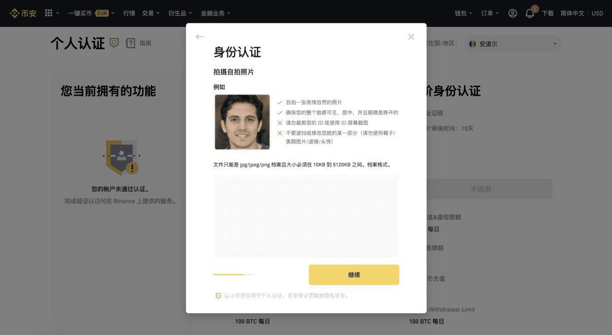 下一步就是 KYC认证就是实名认证(一般 幣安、欧易 这种交易所都是需要实名制的中心化交易所)