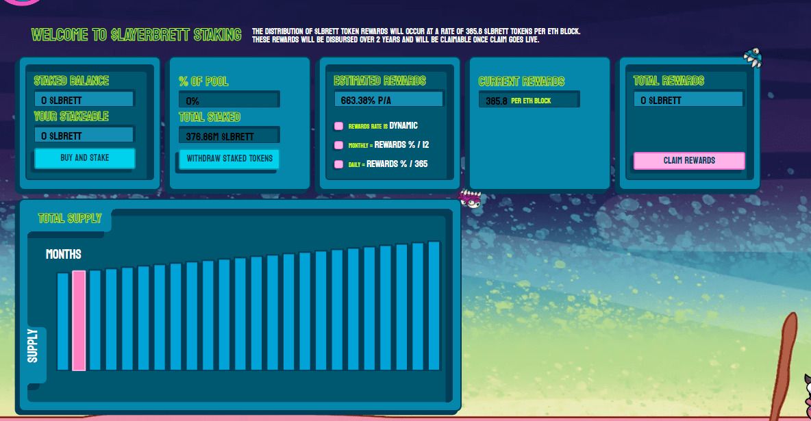 目前宣传的高达 663% 的年化收益率 (APY) 吸引了众多急切寻求下一个热门加密货币的小型和大型投资者。年化收益率百分比会随着每个代币的质押而下降,从而加剧“错失恐惧症 (FOMO)”。这些奖励将持续两年,为早期参与的持有者带来长期价值。目前已有超过 3.76 亿个 $LBRETT 代币被质押,这不仅提供了巨大的价值,也体现了社区的积极参与。