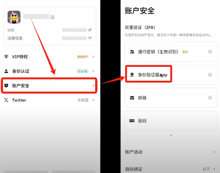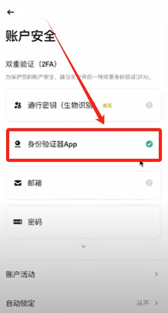 点击【账户安全】,这里至少要开启一种双重身份验证,我一般会选择“身份验证器”,点击它。