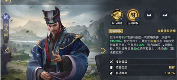 司马懿可选太平道法、蚀骨,加强异常叠加效果。