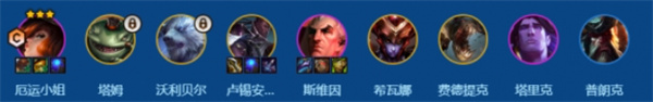 3、4-2升8人口时,买厄运小姐快速二星,搭配前排二星稳血,同时存钱上人口挂5比尔吉沃特或4枪手羁绊