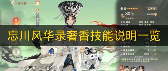 以上就是《忘川风华录》奢香技能说明一览全部内容,希望对你有帮助。想查找更多游戏攻略,欢迎持续关注查看。