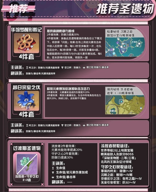 云堇的 最佳套装,直接强化防御力和岩伤,提高爆发增益倍率。