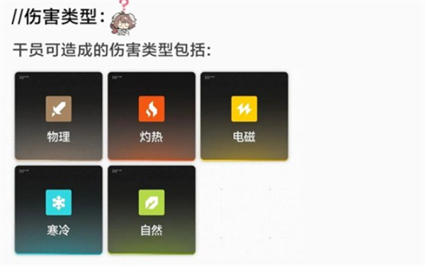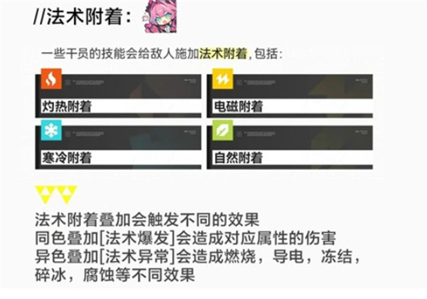 部分干员的技能会给敌人施加属性附着,类型如下: