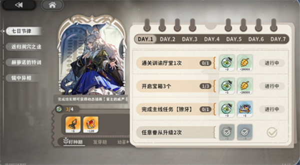 内容:完成七日任务获取茁壮值。