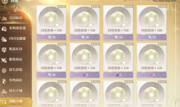 若原世界内容已清完,可在回收小铺将旧素材兑换成泡泡。