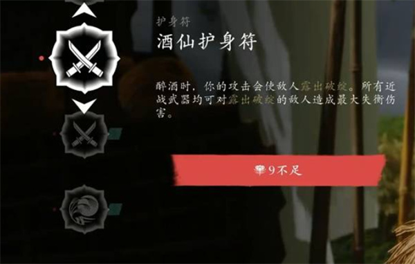 效果:醉酒期间,攻击会使敌人暴露弱点。所有近战武器可对弱点敌人造成最大失衡伤害。