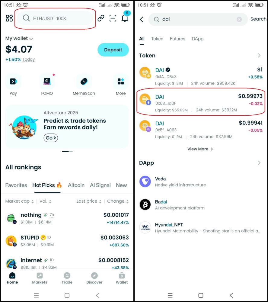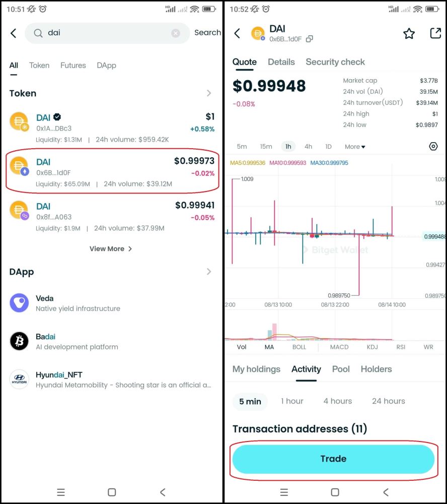 在 Bitget 钱袋上交易 Dai 稳定币 (DAI) 非常简单。请按照以下步骤操作: