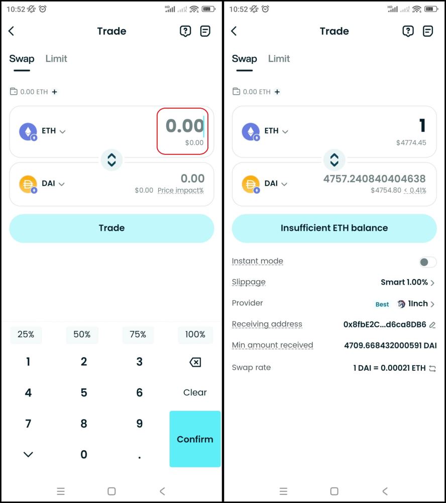 选择市价单(以当前价格买入/卖出)或限价单(设置价格)。输入 DAI 数量并确认。