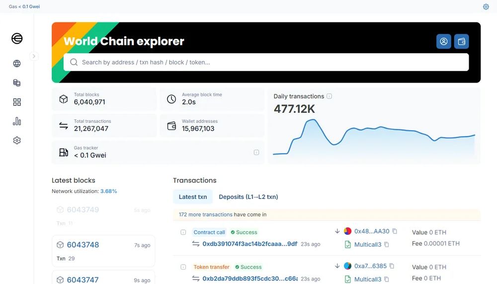 世界链:世界币的定制以太坊第 2 层网络,最近在主网上线。